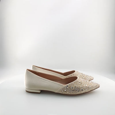 Ovaj model baletanki pruža emocionalnu sigurnost i sofisticiranu ženstvenost, dajući vam osećaj potpune elegancije bez napora. Fizički, obezbeđuje udobnost zahvaljujući mekanoj unutrašnjosti i idealnoj ravnoj peti, što čini svaki korak lakim i prijatnim. Osim toga, nježni ukrasi sa kamenčićima na prednjem delu očaravaju svojom diskretnom luksuznošću i ističu vašu posebnost u svakodnevnim situacijama.